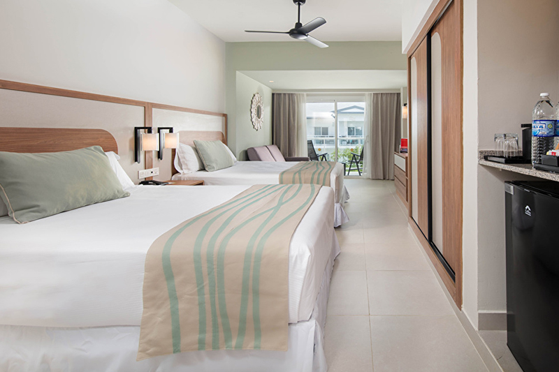 Si desea disfrutar de una escapada familiar a Jamaica, estas habitaciones de 35 m² son perfectas. En las habitaciones familiares del Hotel Riu Ocho Ríos encontrará dos camas queen size (150 x 200 cm), televisión vía satélite, aire acondicionado, minibar, dispensador de bebidas y balcón o terraza.